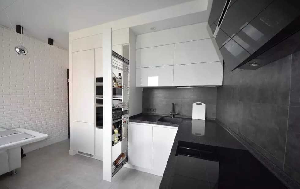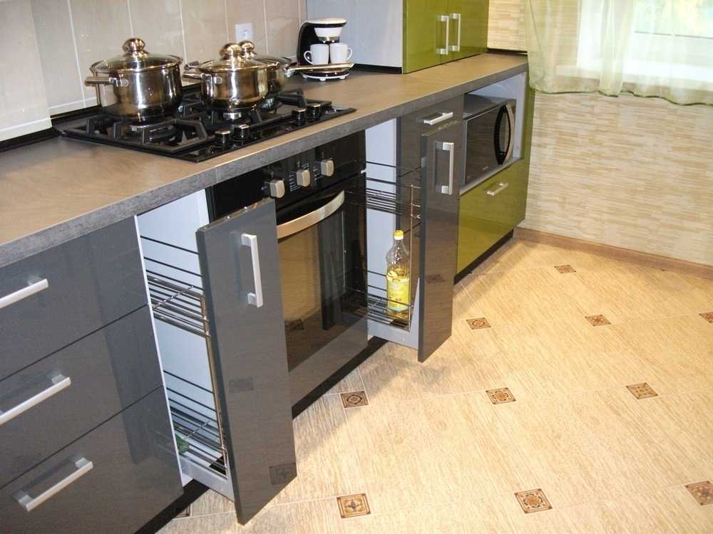- в непосредственной близости от рабочего места удобно расположить выдвижную бутылочницу. Из нее всегда можно быстро достать жидкую приправу, ароматный соус, растительное масло, бутылку с уксусом и остальные вещи, без которых не может обойтись домашний повар;