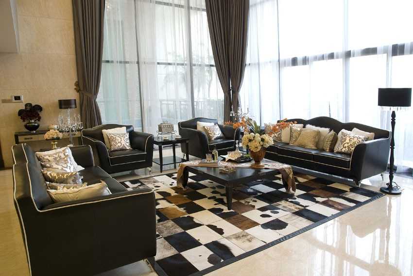 - Обязательно учтите, насколько хорошо освещена комната, прежде чем выбирать преобладающий цвет. Если в гостиной всего одно окно, да и то маленькое и выходит на север, то черный цвет основным лучше не выбирать, поскольку комната станет совсем мрачной. Чтобы сделать такое помещение более светлым, используйте натяжной потолок чистого белого цвета.