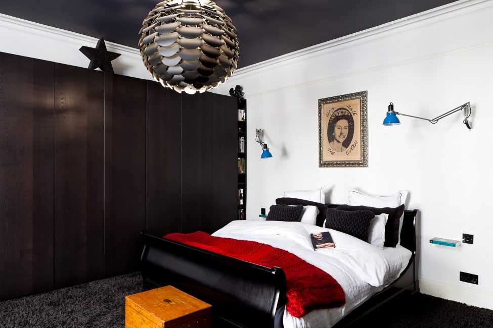 - Даже при выборе основного черного цвета никогда не делайте черным потолок — он в любом случае должен быть в светлых тонах. Черный потолок в интерьере оказывает давящее впечатление, что заметно сказывается на психике и настроении.