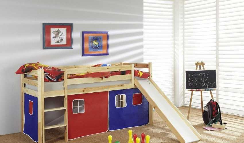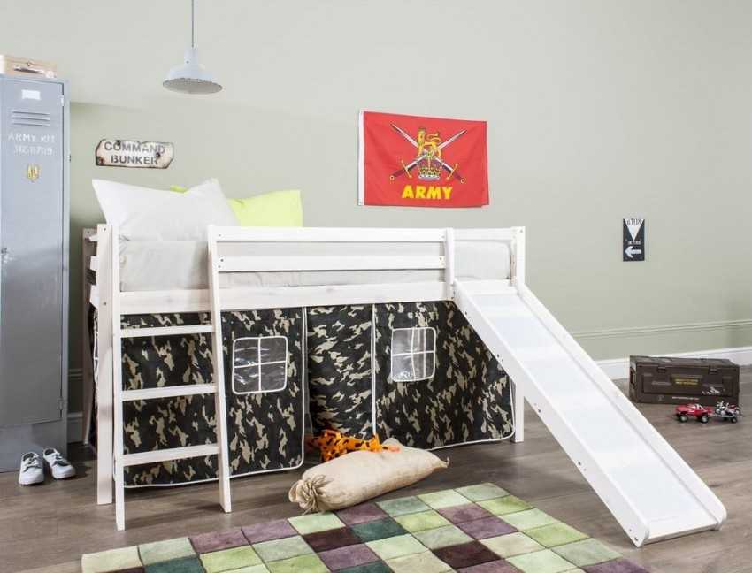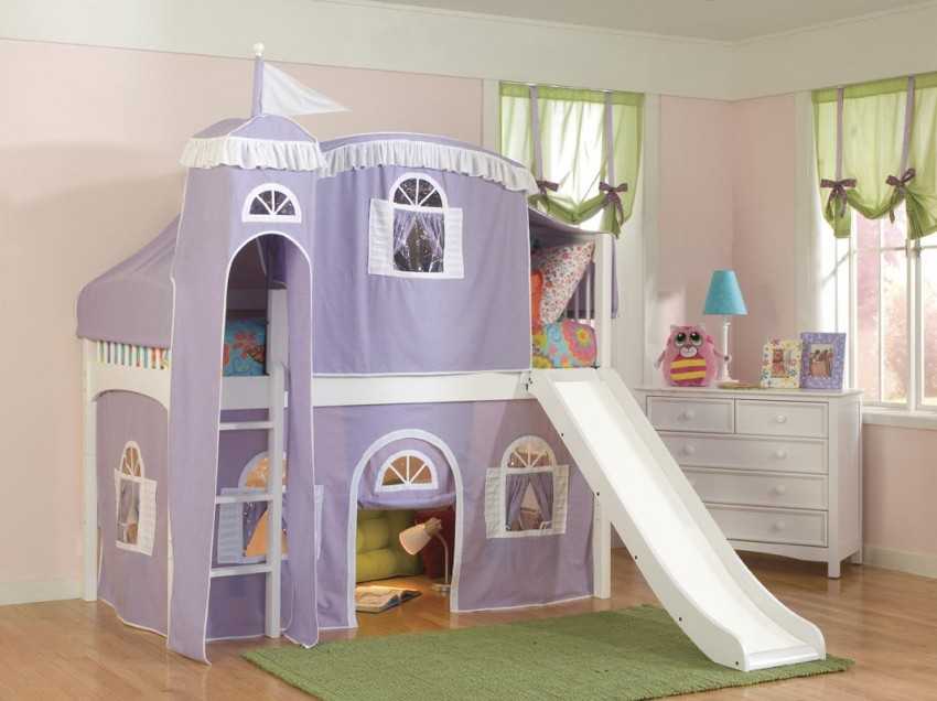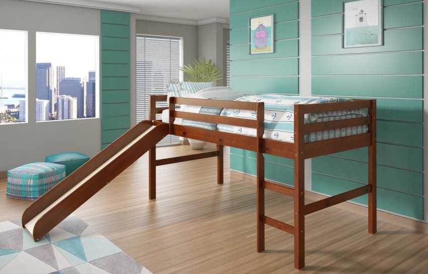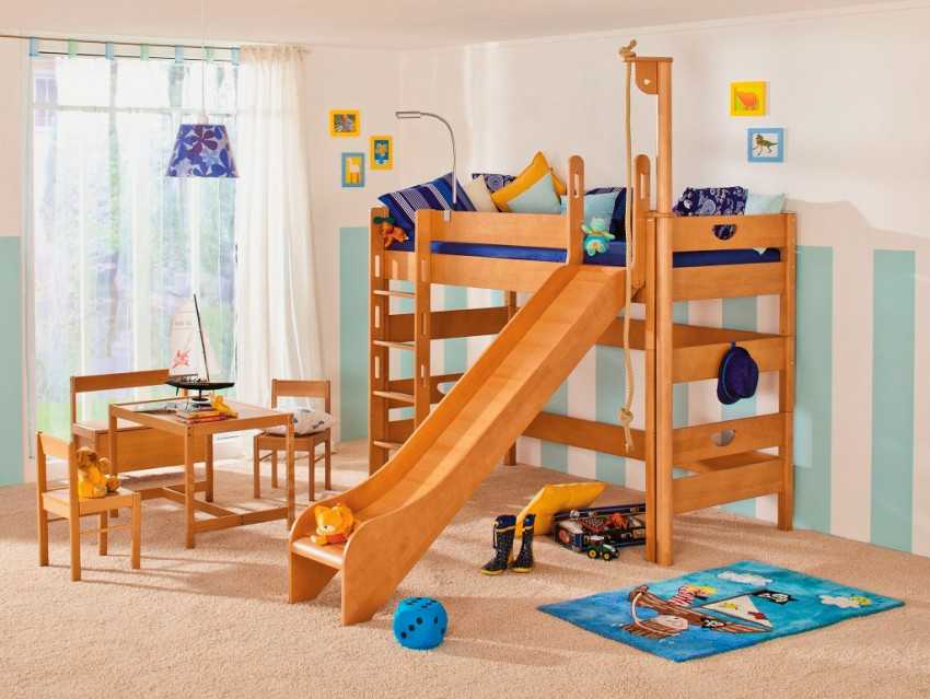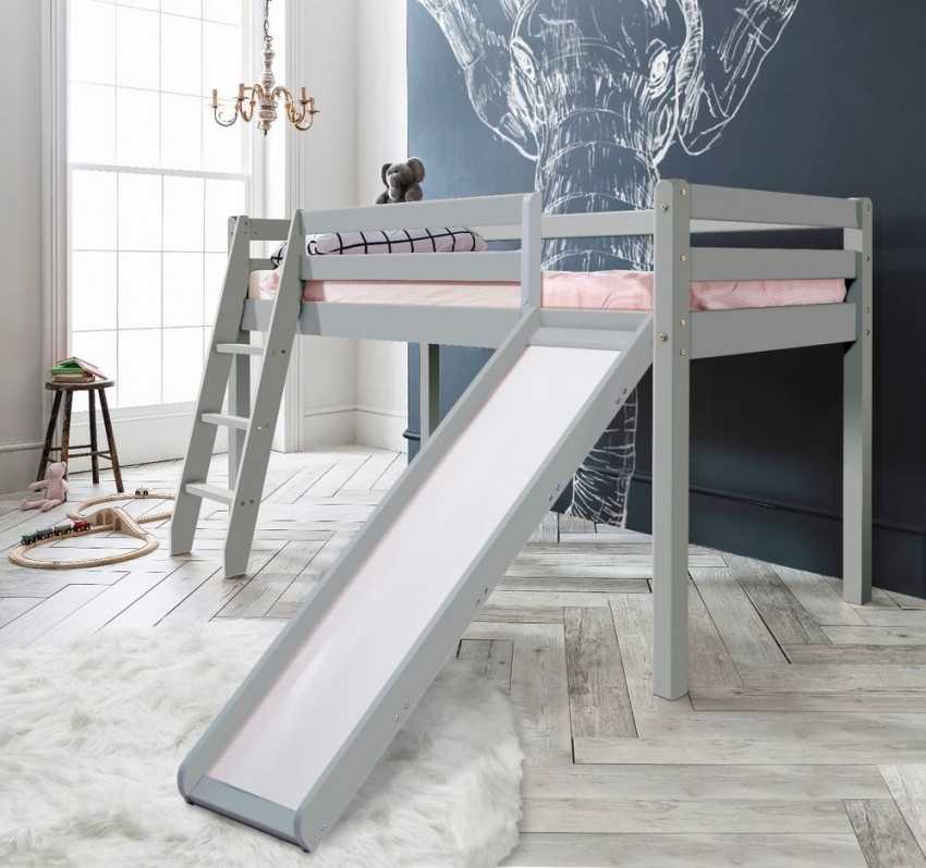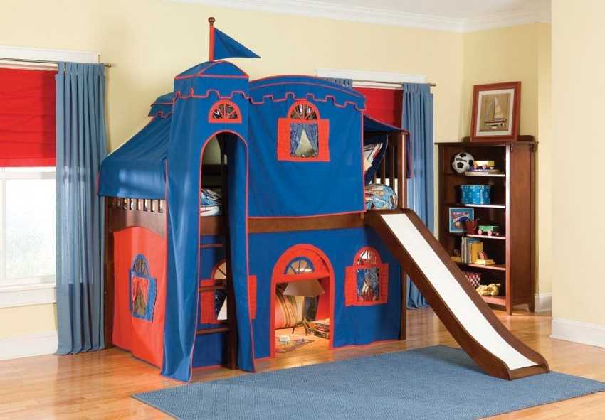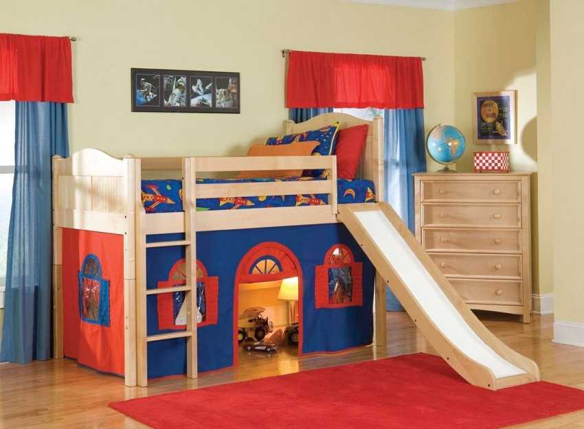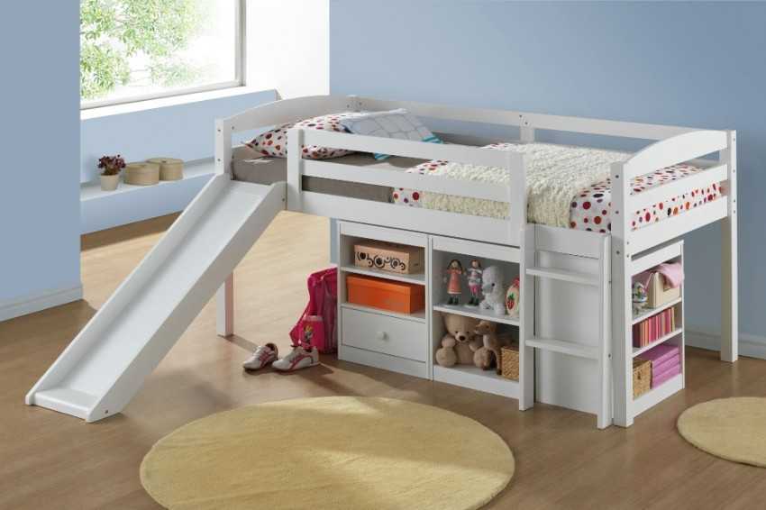 Кровать-чердак с горкой позволяет реально сэкономить место в детской комнате