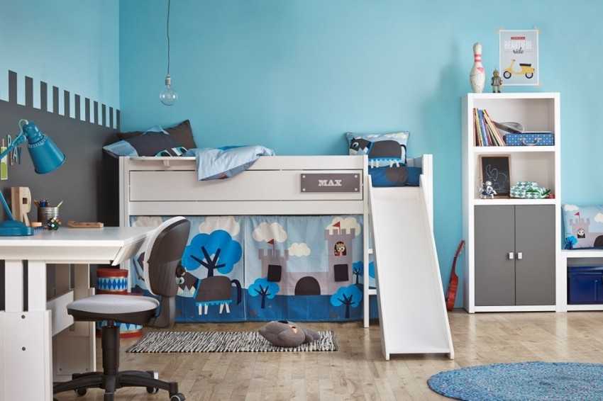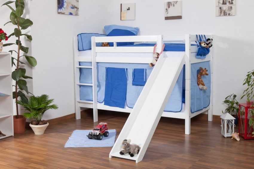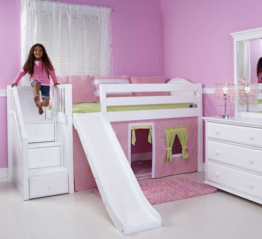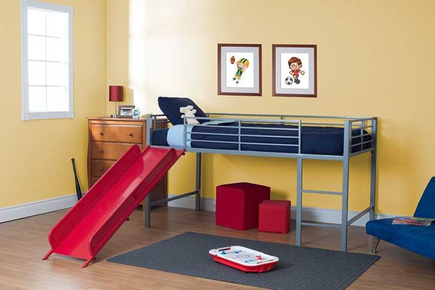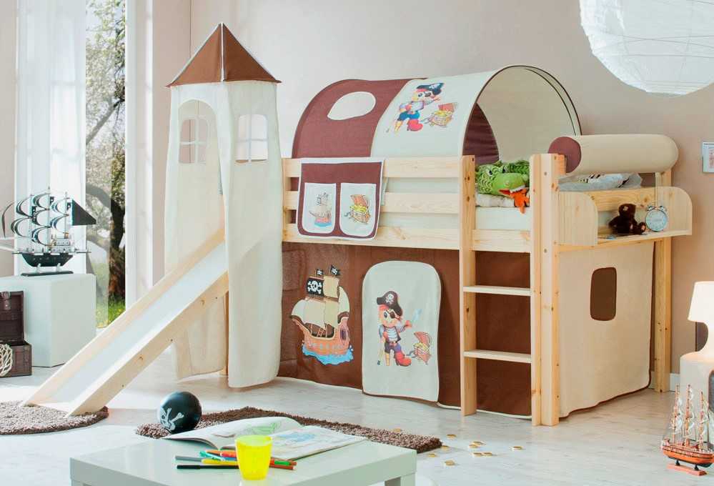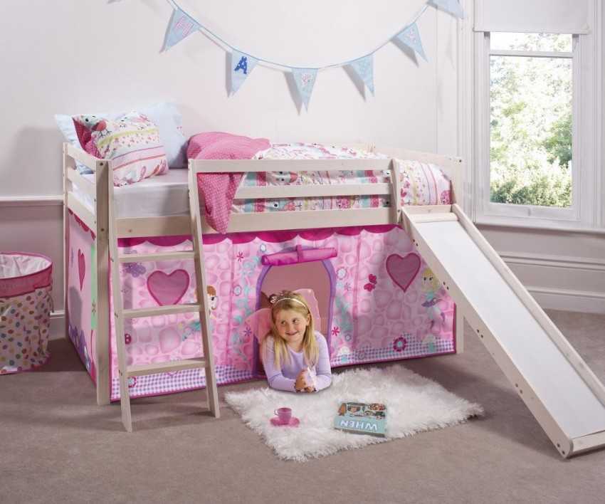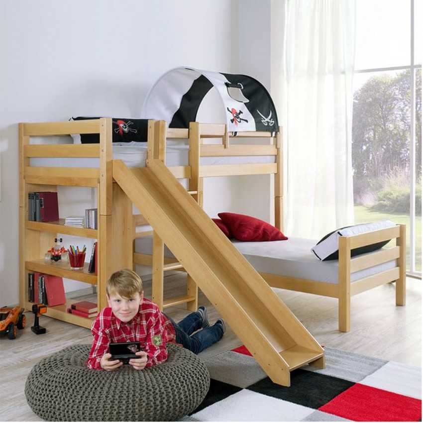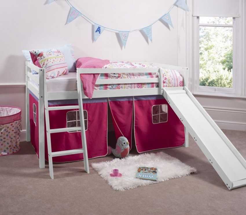 Кровать-чердак с горкой позволяет реально сэкономить место в детской комнате