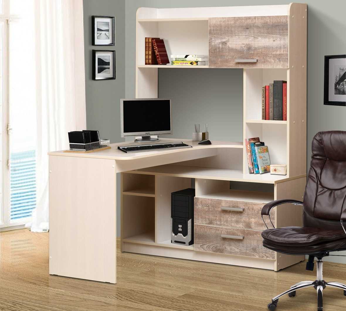 Не лишними будут дополнительные элементы: подстольные тумбы, выдвижная панель для клавиатуры, полки для книг, тетрадей, подставка для монитора. Письменные столы могут быть как элементами мебельного гарнитура, так и самостоятельными изделиями.