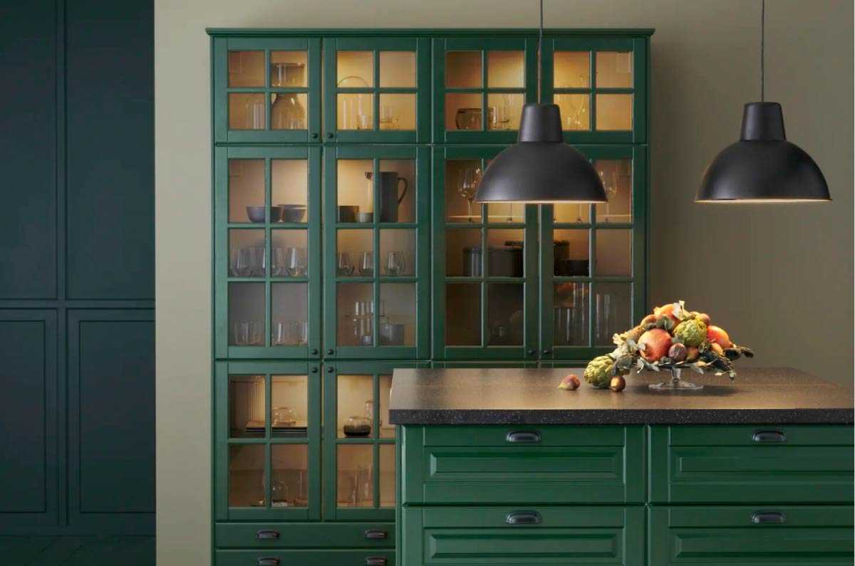 Ешё один тренд в мире дизайна кухонь мы подсмотрели в каталоге Икеа на 2020 год. Согласно ему, в моду войдут монохромоные цветные кухни (см. фото ниже), в то время как когда-то ультрамодные двухцветные гарнитуры отойдут на второй план.