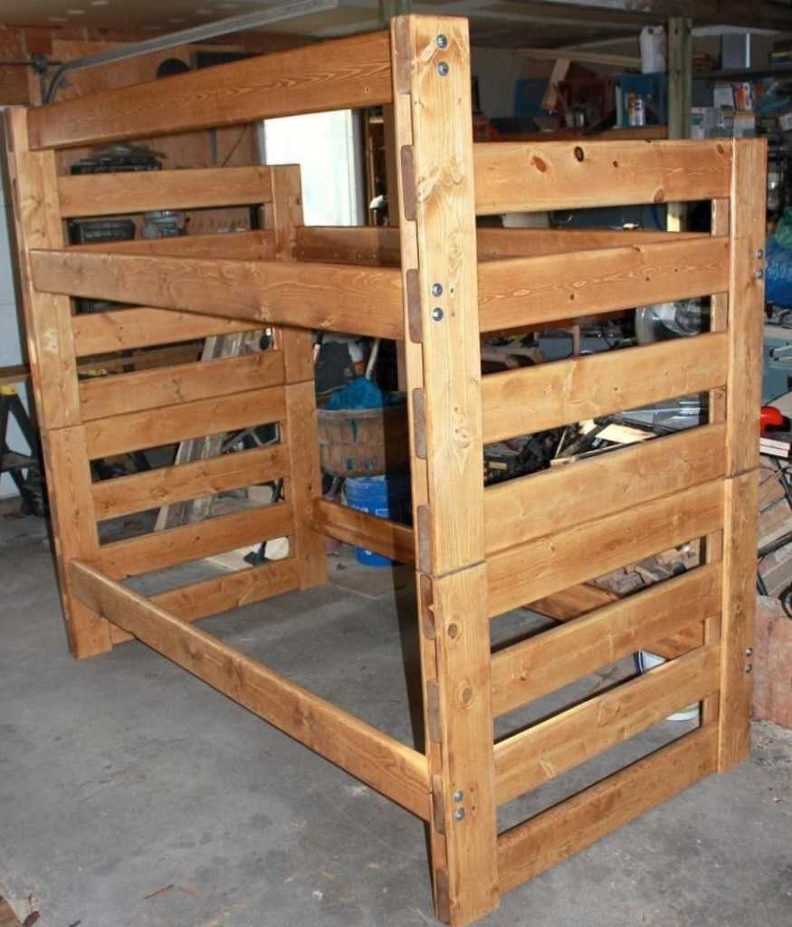 Двухъярусная кровать из обрезной доски — экономный и простой в изготовлении вариант
