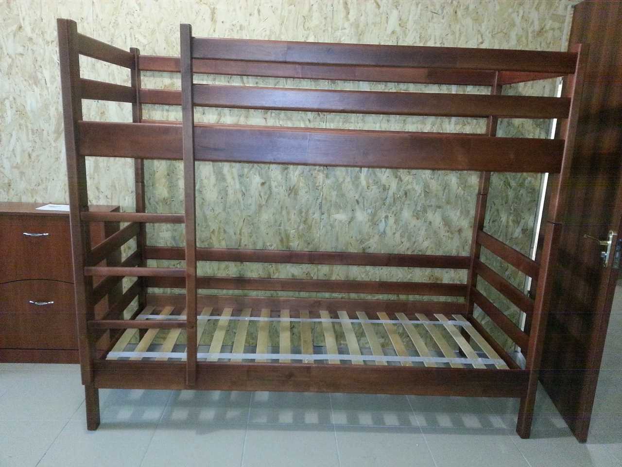 - Натуральный массив. Премиальный экологически безопасный материал. Для производства двухъярусных кроватей дерево используется довольно редко. Для поддержания привлекательного внешнего вида ему требуется соответствующий уход.