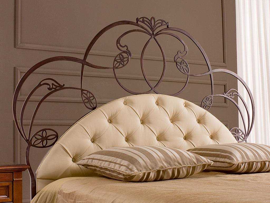 - Металлическая окантовка. Как правило, это кованные или штампованные элементы. Они привносят особый колорит в дизайн – кровать с таким изголовьем невероятно стильная и красивая.