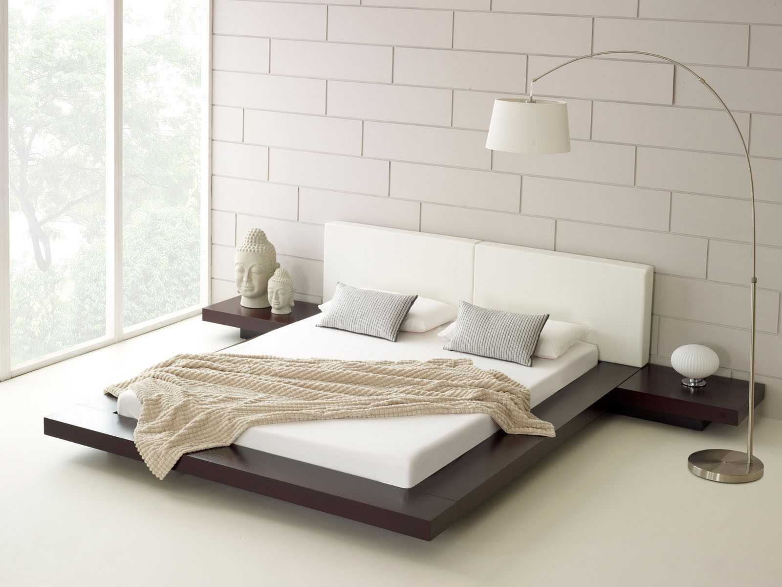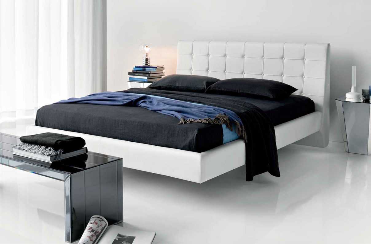 - Для стилей модерн, минимализм, хай-тек выбирают кровати с прямой и узкой спинкой. Этим направлениям свойственны четкие и прямые линии, отсутствие закругленных, плавных деталей. Спальное ложе может быть сделано с полочками в изголовье, что повышает функциональность и удобство использования мебели. Декор в этих стилях самый незаметный и скромный, но это компенсируется богатой, цветовой гаммой. Разнообразие оттенков позволяет создать неповторимый яркий дизайн, ведь современные модные стили не приемлют приглушенных, пастельных оттенков. Они оперируют красочными, сочными цветами.
