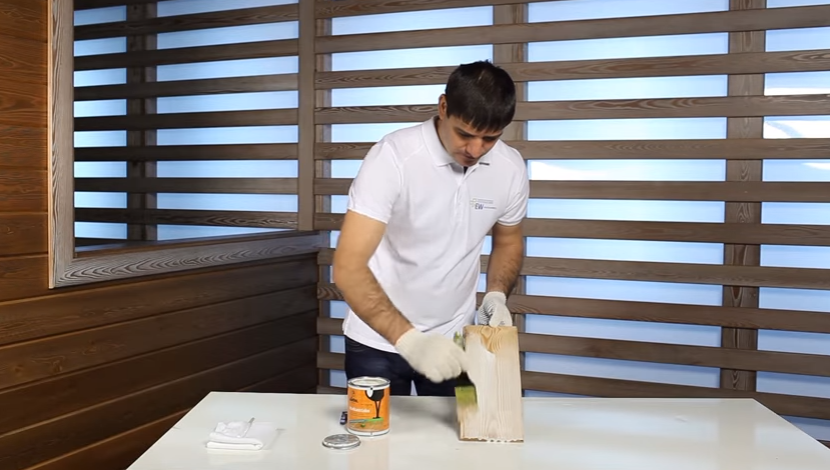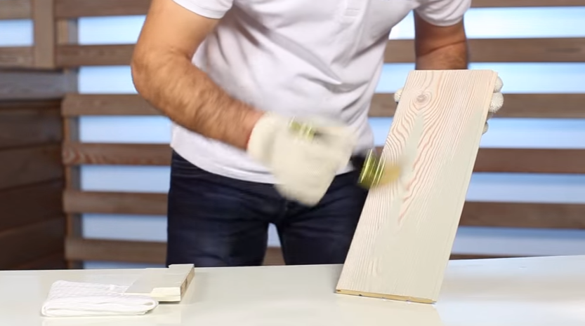 Шаг 1. Берут любую грунтовку для дерева и тщательно наносят ее кистью на древесину. Грунтовка должна хорошо проникнуть во все бороздки и углубления. Дают заготовке высохнуть.