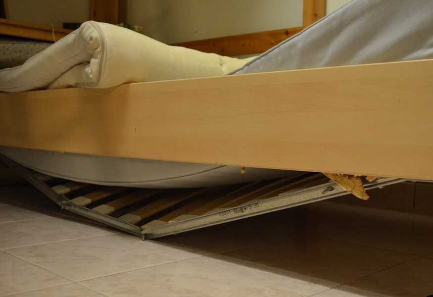 - Повреждение каркаса. Когда мебель провалилась посередине, необходимо разобрать конструкцию, изготовить новую деталь вместо сломанной, если основание выполнено из дерева. Устранение проблем на металлическом изделии осуществляется при помощи сварочного аппарата.