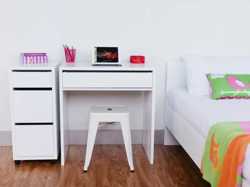 Вариантов письменных столов существует множество: можно прикрепить его к стене или повесить шкаф с выдвигающейся столешницей.