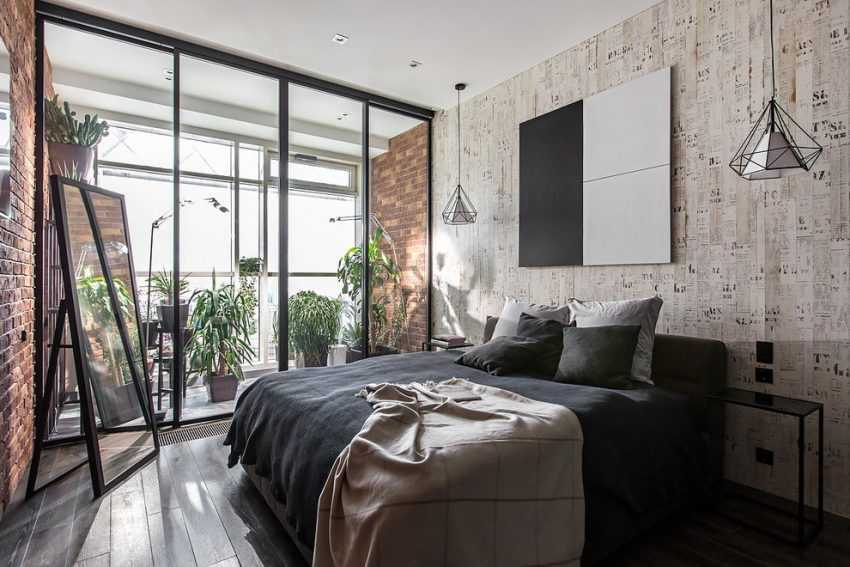 Хорошей заменой сплошным перегородкам могут стать раздвижные двери. Чтобы сохранить интимность спальной зоны можно выбрать матовое стекло или же дополнить прозрачный материал занавесками.
