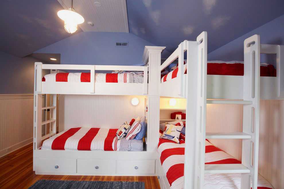 Особое внимание родители обязаны уделить уровню безопасности мебели. Кроме качественных лестниц и креплений понадобятся специальные ограждения