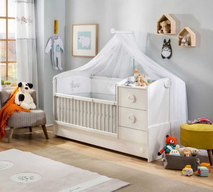 Конструкция белого цвета придает обстановке дополнительного света и благодаря своей универсальности отлично подходит, как для новорожденного мальчика, так и девочки.
