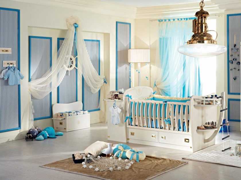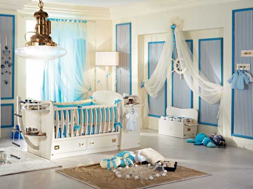 Что касается цветовой палитры, то для декора комнаты для недавно появившегося на свет мальчика используют: