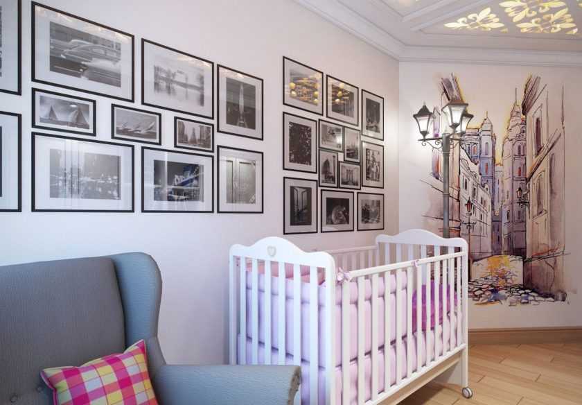 Украшение стен большим количеством ярких картинок, плакатов, фотографий – одно из модных направлений в дизайне. Это, в первую очередь, нужно молодой маме, для поддержания себя в жизнерадостном тонусе. В первые месяцы жизни ребенку они безразличны, в будущем – могут послужить средствами эстетического воспитания.