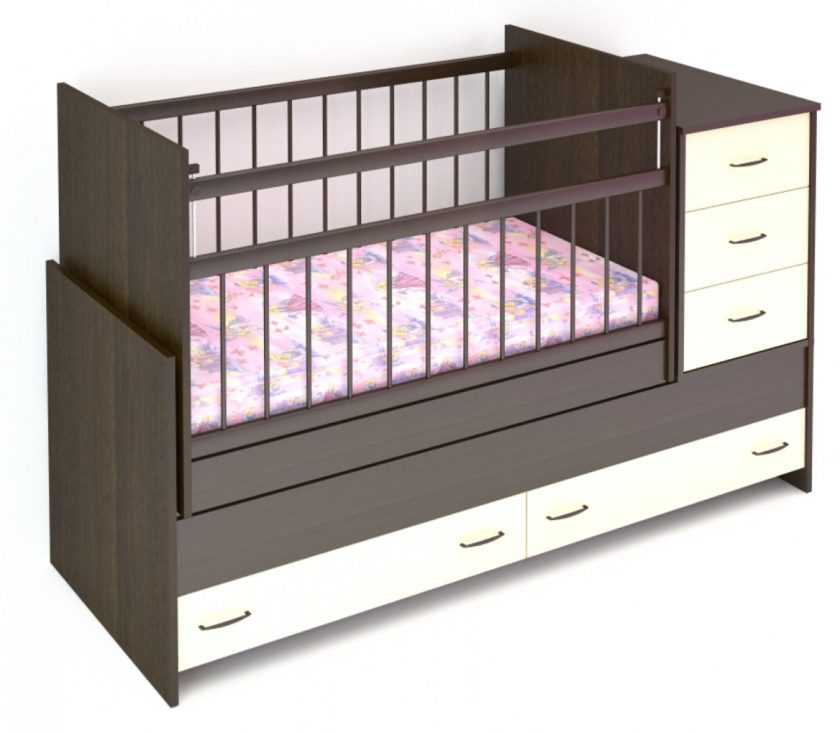 - боковые стенки опускаются на 25 сантиметров, что позволяет использовать модель под “взрослого” малыша;
