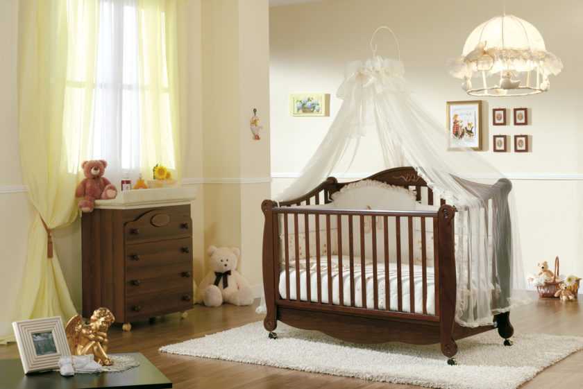 Важнейший предмет мебели – детская кроватка. Она должна быть достаточно большой, ведь дети очень быстро растут, удобной и красивой. Традиционно лучший материал для кроватки – светлое дерево. Он экологичен, светлые тона и фактура дерева добавляют тепла и позитивных эмоций. Не нужно гнаться за вычурными формами и фурнитурой, ребенку это не нужно, может послужить отвлекающим и раздражающим фактором.