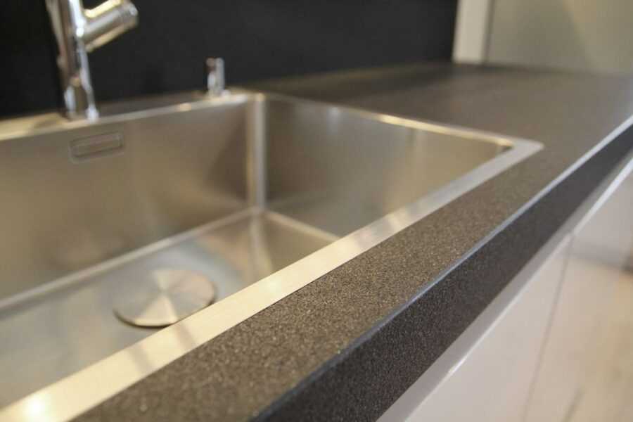 Однако следует помнить, что не существует материала без недостатков. Конгломераты не устойчивы к температурам выше 180-190 ° C (за исключением армированных композитов, предназначенных для раковин), и поэтому очень горячая кастрюля может вызвать вздутие или растрескивание столешницы. Сложную поверхность сложнее поцарапать, чем мрамор, дерево или ламинат. На такой безупречной композитной столешнице каждая трещина более заметна на темных и блестящих поверхностях. Хорошо, что вы можете отшлифовать царапины наждачной бумагой.