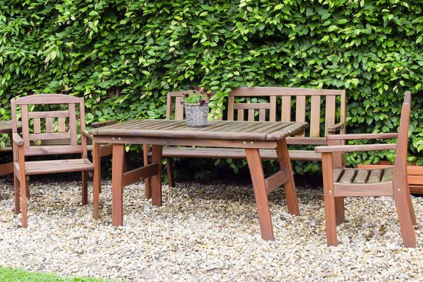 Деревянная мебель удобна в использовании, но ее нежелательно оставлять под дождем