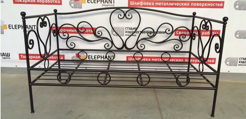 Художественная ковка выполняется вручную из металлической заготовки толщиной 10-40 мм. Чаще всего используются пруты квадратного сечения. Чтобы собрать кровать с ажурным узором, все элементы проходят обработку в горне, затем им придают форму кувалдой и молотом. И только после этого их соединяют хомутами и сваркой в единое целое.