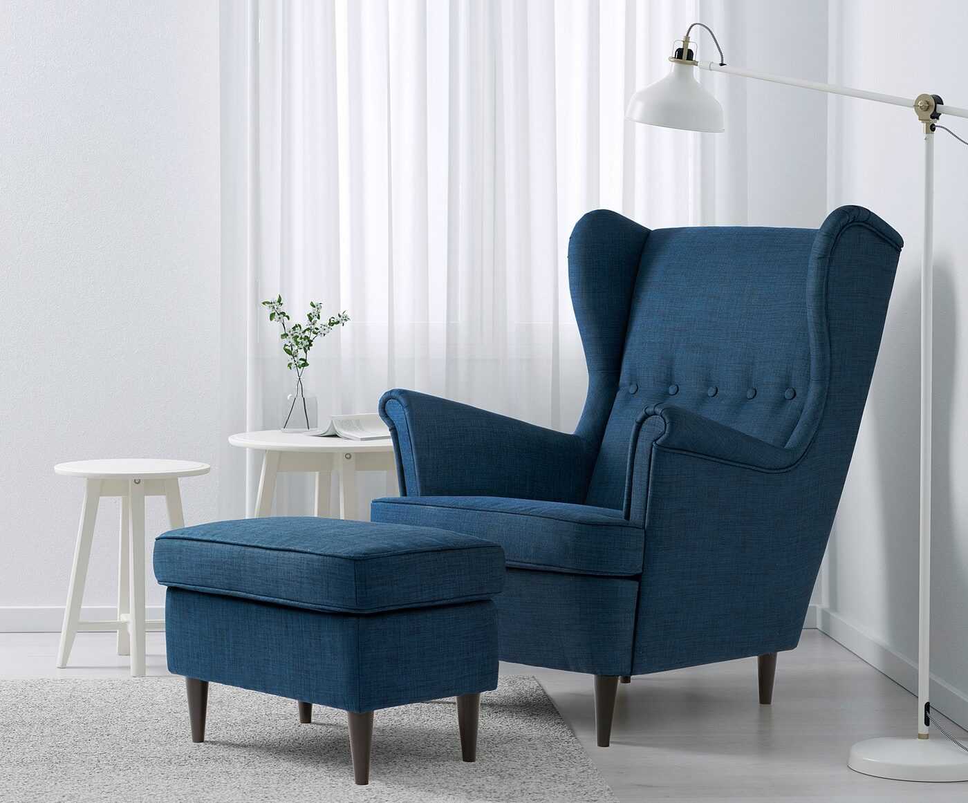 Небольшие габаритные размеры, яркая ткань обивки, глубокое вместительное сиденье придадут интерьеру любой комнаты законченность, гармоничность. Полноценный отдых, комфорт, расслабление после трудового дня — важные моменты в жизни современного человека. Получить все это можно с легкостью, достаточно просто расположиться мягком удобном кресле Страндмон от Икеа.