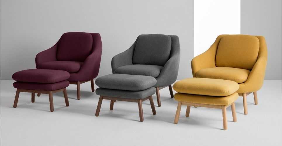 Мягкий табурет можно использовать в дополнение к креслу, чтобы вытянуть ноги.