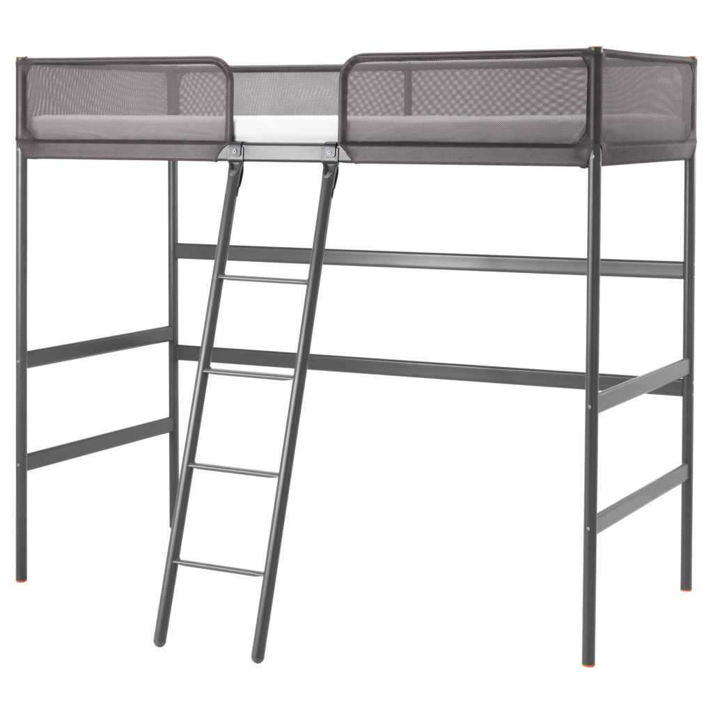 Прочная устойчивая конструкция кровати-чердака Тромсо от Икеа для комнаты школьника младшего и среднего возраста. Изготавливается из стали, покрытие – белое на основе полиэфиров. Повредить его крайне сложно, а к влаге оно нечувствительно.