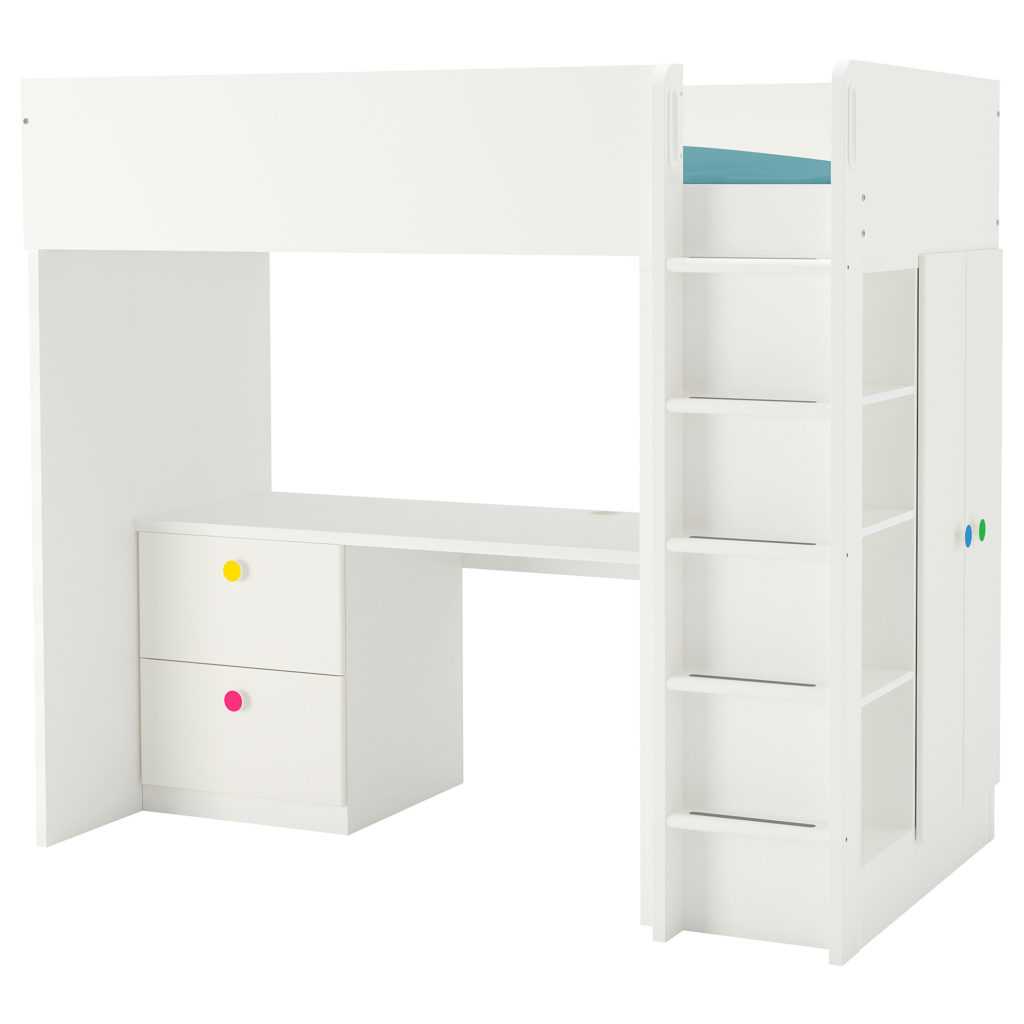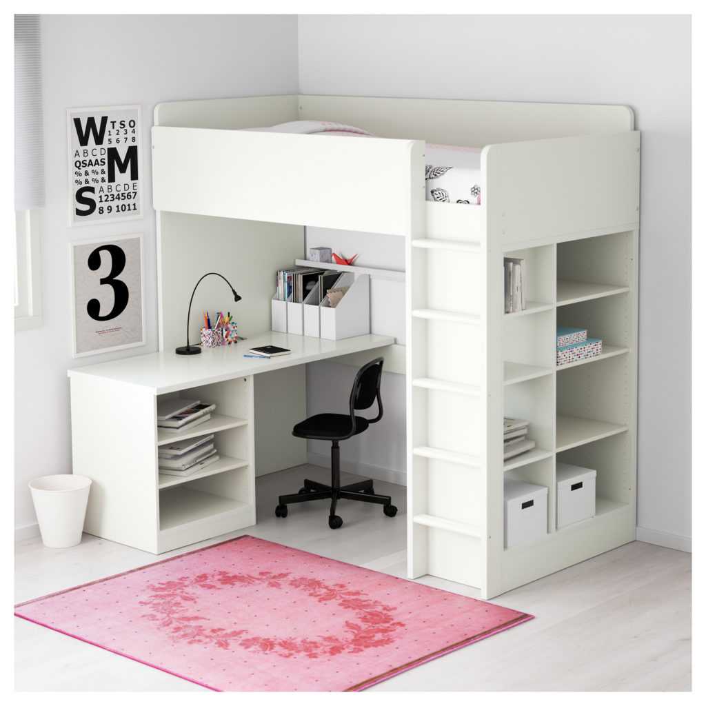 Модель кровати-чердака стува от Икеа представляет собой вариант с готовым рабочим уголком для школьника. Высота конструкции 193 см, размеры лежака соответствуют односпальной кровати.