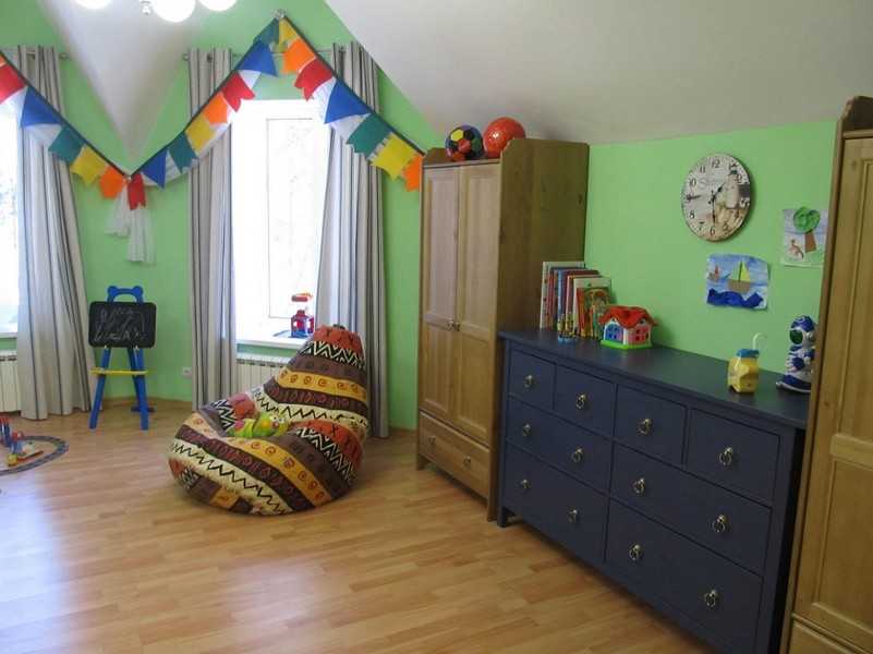Оформление игровых зон может быть достаточно разнообразным – все зависит от фантазии родителей и ребенка. Но наибольшей популярностью у девочек пользуется «будуар», в котором можно закрыться ото всех при помощи шторок. Мальчикам же больше нравится кровать-чердак с горкой, с которой можно скатываться сверху, не тратя времени на спуск по ступеням. Однако при этом стоит подумать о безопасности ребенка. Неплохим решением может стать мягкий ковер и поролоновые акустические плиты на стены.