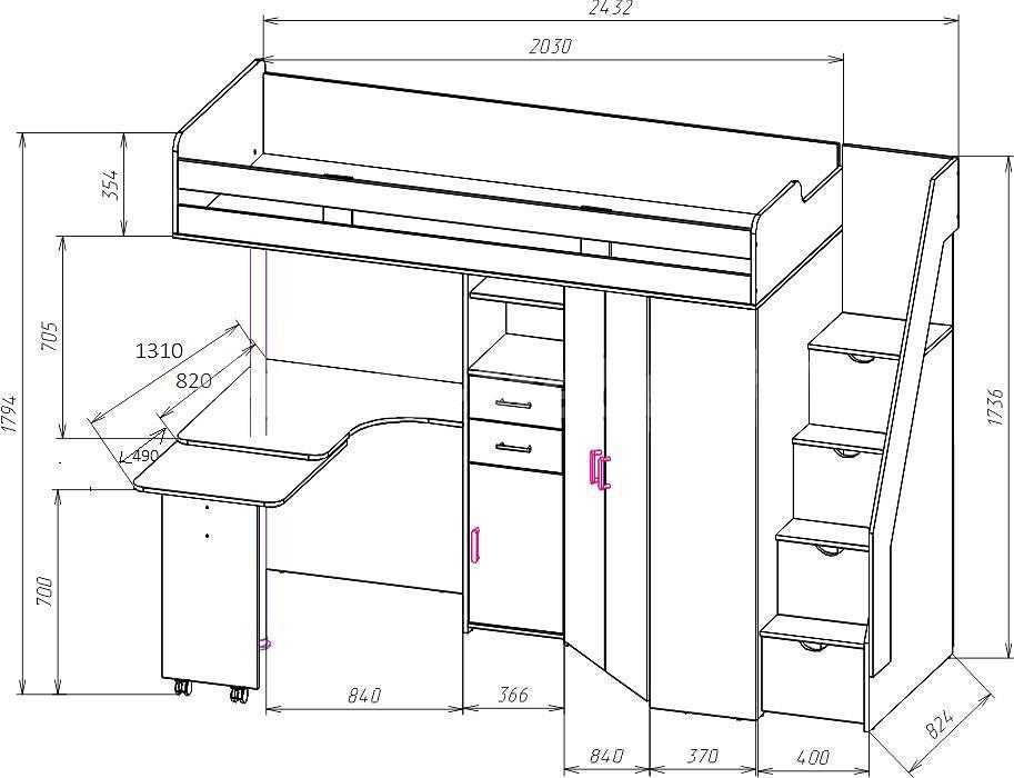 - Дополнительное усиление конструкции кровати-чердака за счет боковых стенок шкафа.