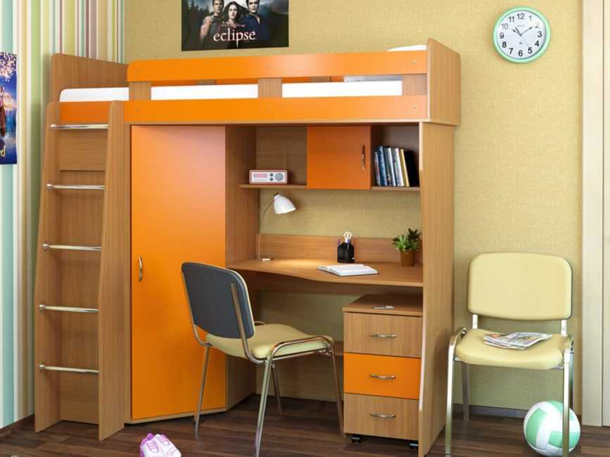 Если мебель предполагается ставить в комнату подростка, лучше всего подойдет стандартный вариант. Если она рассчитана на двоих детей, вполне комфортной будет кровать-чердак со шкафом и двумя спальными местами.