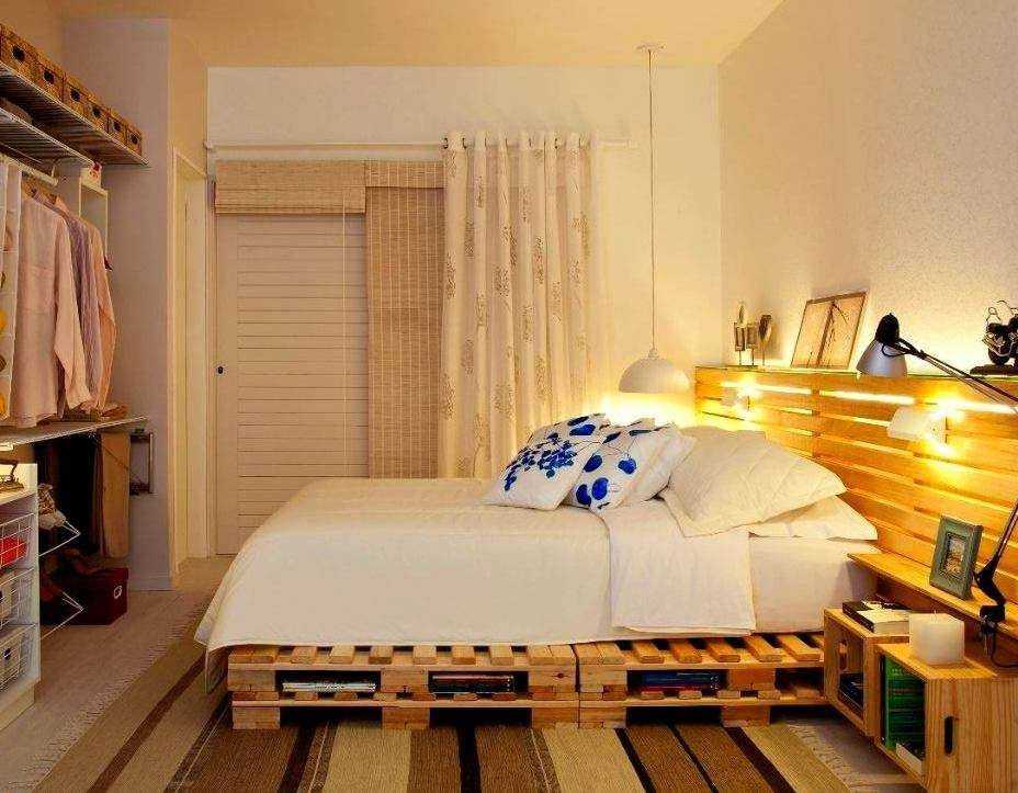 - Высокая скорость и простота сборки. Мебельный гарнитур для спальни изготавливается за несколько часов. Для работы с поддонами не требуется квалификация, достаточно лишь умения обращаться с молотком и ножовкой.