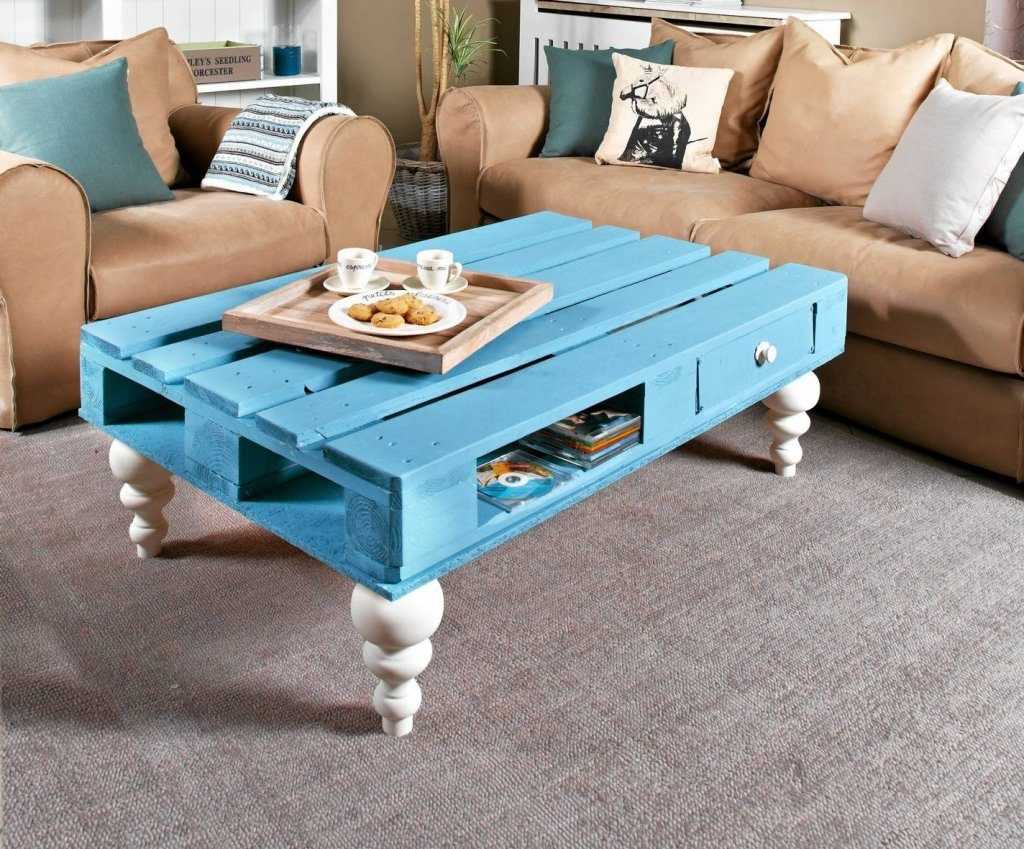 Одним из наиболее популярных вариантов мебели, которые изготавливают из деревянных паллет, является журнальный столик. Почему? Все предельно просто – это самое простое, что можно придумать и самое легкое в плане изготовления. Так что ничего удивительного. Прекрасный журнальный столик станет отличным дополнением диванного комплекса из поддонов. В сумме получится стильный гарнитур, который одинаково хорошо смотрится на даче, в саду или в гостиной. А добавив немного декора, вы легко сможете изменить общее настроение и атмосферу помещения.