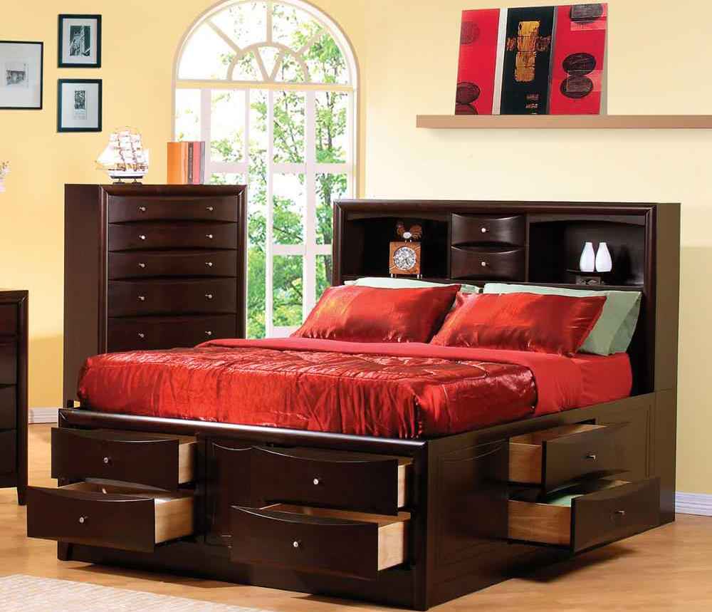 Ложе для сна, оборудованное системами хранения, – отличный вариант для спальни небольшого размера, так как исключает необходимость покупки дополнительного шкафа, который займет очень ценное пространство. Такие конструкции могут иметь разнообразную форму и комплектацию. Стандартным является месторасположение ящиков– внизу кровати. Выдвигаться они могут с одной или нескольких сторон.