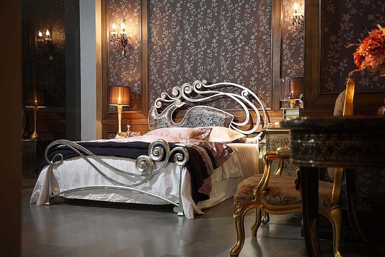 Кровати с узорчатыми, ажурными изголовьями прекрасно подойдут для спален в стиле романтизм. Прекрасным дополнением к ним станет светлый и легкий балдахин. Для модерна и барокко подойдут модели с изысканными, вычурными орнаментами и многочисленным декоративными элементами. А в стиль ретро гармонично впишутся классические металлические кровати с двумя спинками, ножками из того же материала.