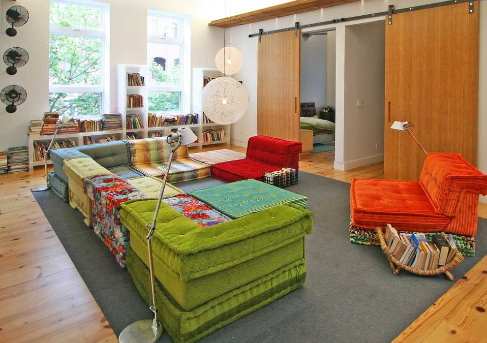 Яркий диван в гостинойИсточник avatars.mds.yandex.net