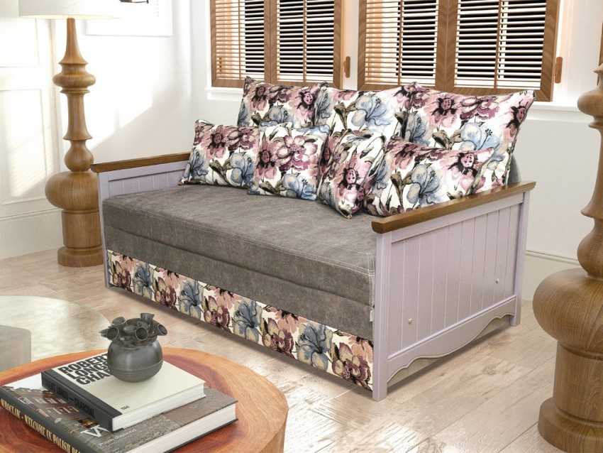 В оформлении дивана-кровати используют только натуральные материалы, такие как дерево и текстиль. Здесь часто встречается раскладная конструкция книжка, еврокнижка с потайным бельевым ящиком, модели с высоко или низковыкатным механизмом, оснащенные с помощью модулей с баром или реклайнером.