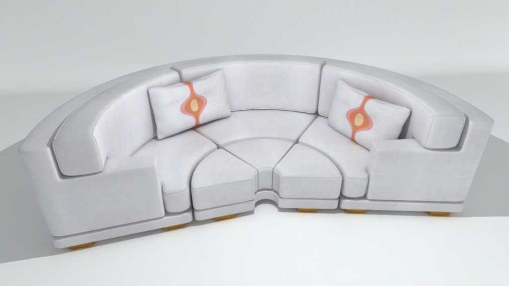 Цельные радиусные модели изготавливаются в фиксированном размере, но он может быть самым разным. Предложение на рынке мебели сейчас очень широко и разнообразно, от маленьких полукруглых кухонных диванов до крупной мебели для офисов и гостиных.