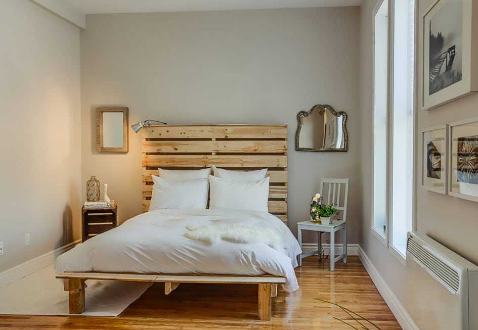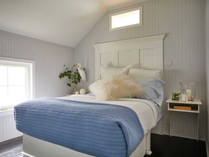 Учитывая пространство небольшого помещения, выбирать громоздкую крупногабаритную мебель не рекомендуется. Она визуально «съест» все свободное пространство, а спальня лишится атмосферы уюта.