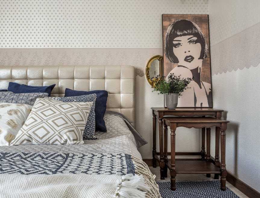 Среди прочих аксессуаров следует особенно выделить различные статуэтки, которые обычно размещают на письменных столах или тумбах. Небольшие декоративные свечи помогут сделать интерьер более интимным, а крупные картины, размещенные над изголовьем кровати, позволят сделать акцент на центральной части помещения.