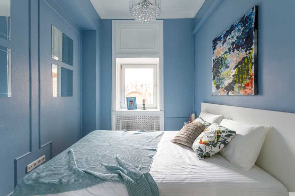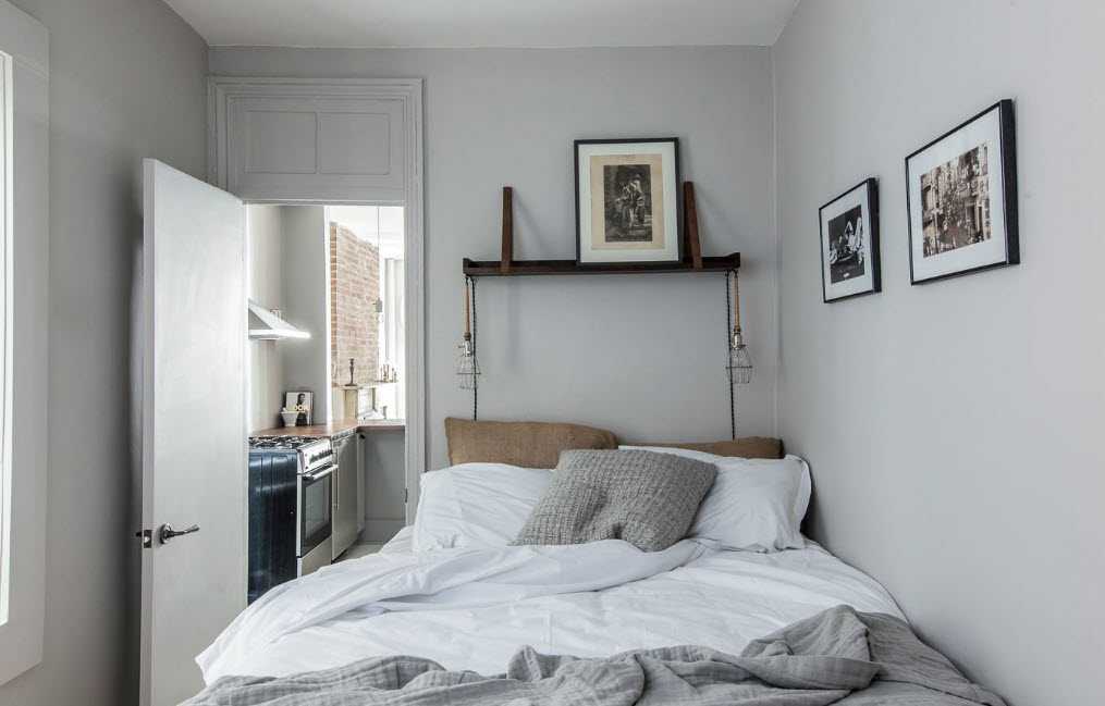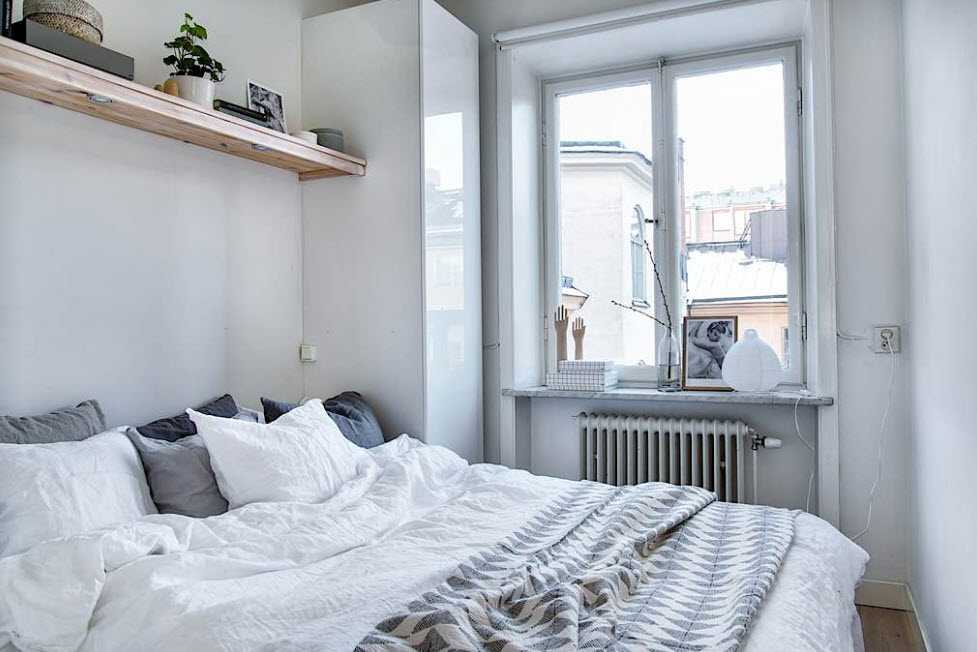 Если комната не только очень маленькая, но и узкая, не нужно ставить кровать поперек комнаты. В этом случае ее придется ставить таким образом, чтобы она не мешала при вдохе в помещение. При этом многое зависит от расположения дверного проема и радиаторов. Скажем, при всем желании нельзя поставить кровать у окна, если под подоконником батареи.