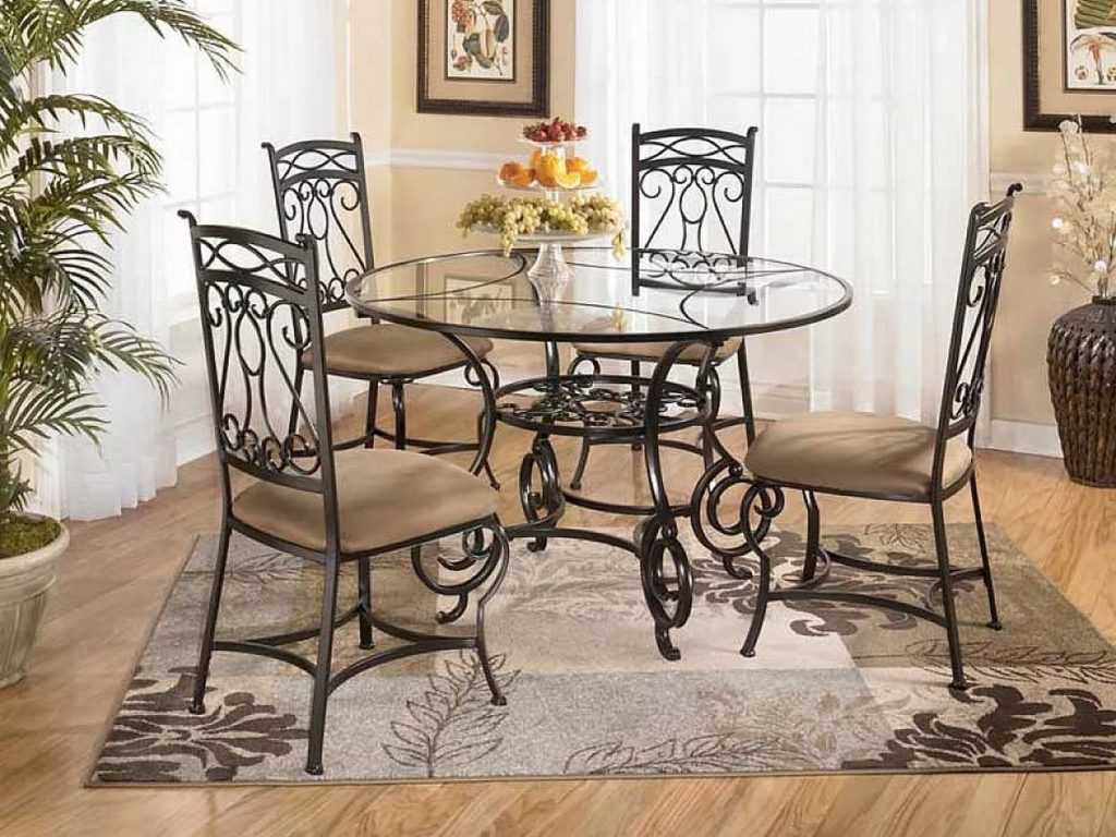 Обычно в столовой можно встретить мебель из пластика, дерева, ДСП, реже — из металла или стекла. Металлические предметы можно вписать в стиль хай-тек, но их сложно назвать удобными или создающими уют. А случайно споткнувшись, можно получить ушиб. Высокий риск травм связан также с мебелью из стекла — особенно если у кого-то есть привычка не закрывать распахнутые дверцы. К тому же за этим материалом нужно тщательно ухаживать, случайно оставленные отпечатки пальцев сильно портят впечатление. Зато такая мебель весьма изящна, красиво смотрится, добавляет в интерьер элегантности.