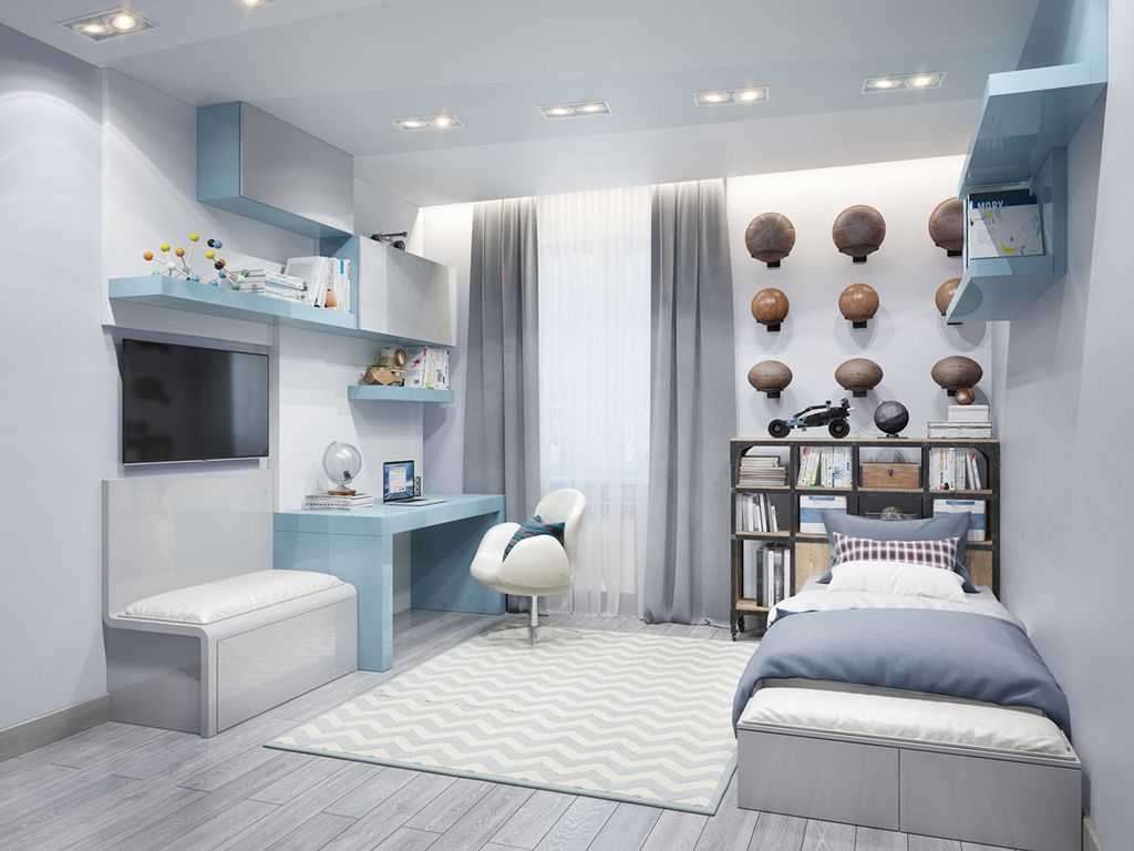 Во главу планировочных решений необходимо поставить увлечения вашего сына и учесть его возраст. Зачастую в этот период парень уже имеет определенное представление о дизайне собственной комнаты. Соответственно концепцию ремонта будет определять сам хозяин помещения.