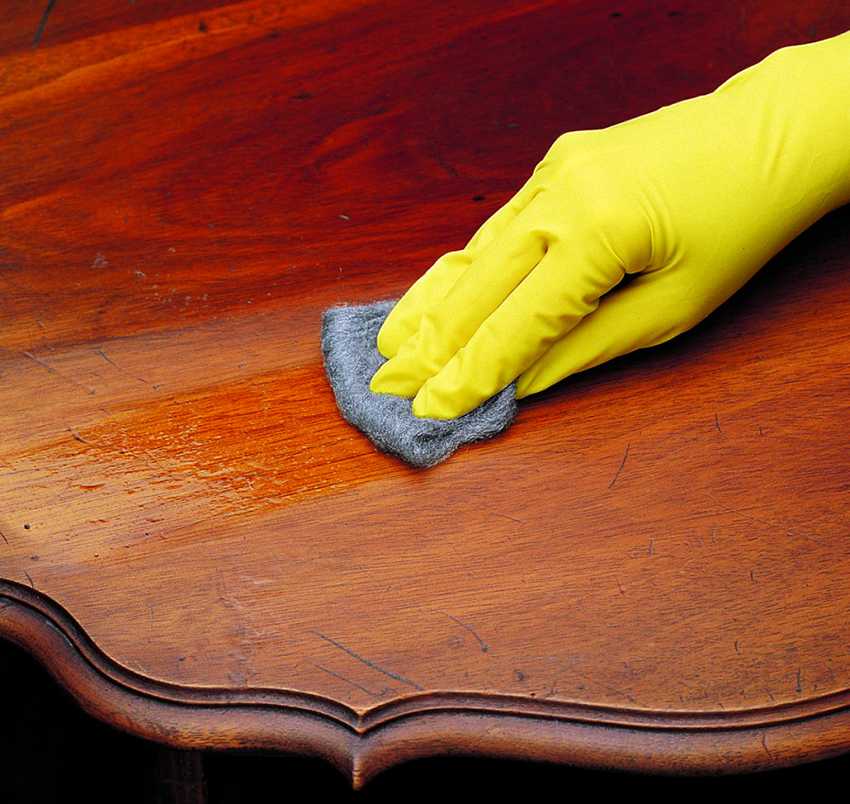 После обработки воском, мебель обязательно полируется салфеткой либо мягкой тканью.