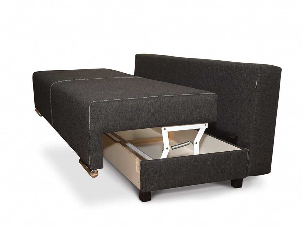Это усовершенствованная конструкция первого варианта — сидение выдвигается вперед, а после опускается вместе со спинкой. Как правило, в них предусмотрен ящик для белья. А еще для раскладывания не требуется сильных физических усилий.