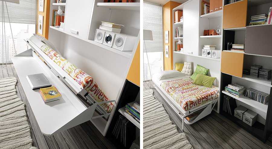 В сложенном виде это стол, приставленный к стационарному шкафу, а в разложенном – удобное спальное место.