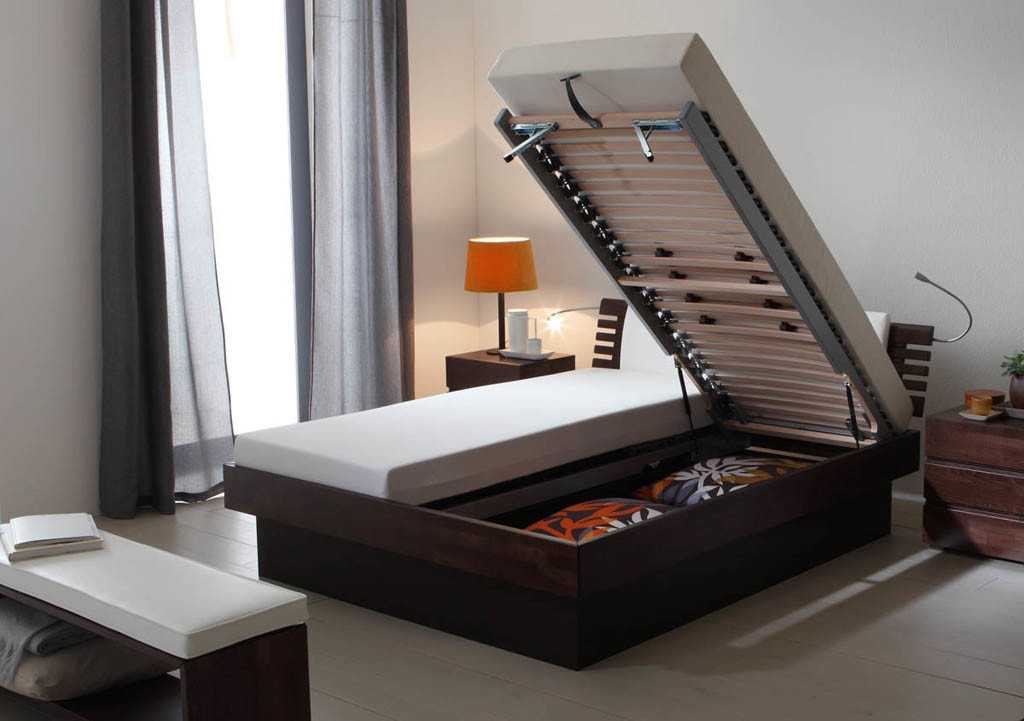- Практичность. Кровати, имеющие подъемный механизм, оснащены местом хранения вещей.