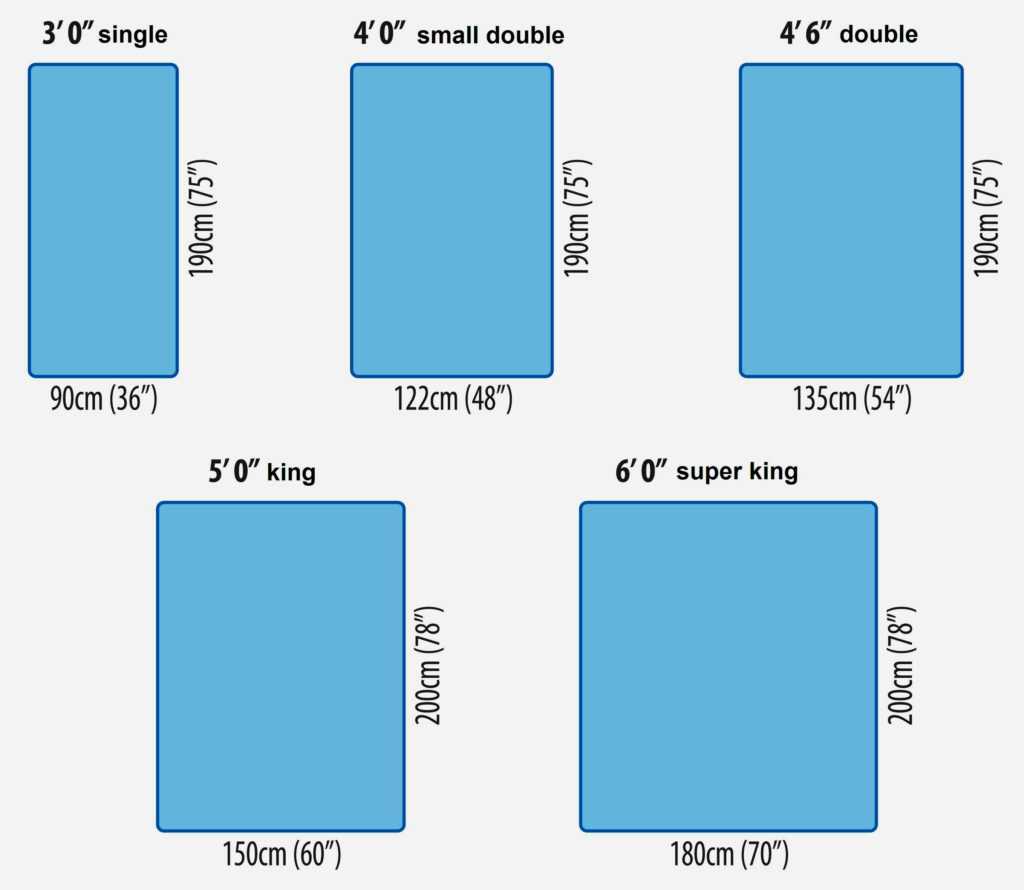 Таблица размеров белья в соответствии с габаритами матраса, одеяла и подушек