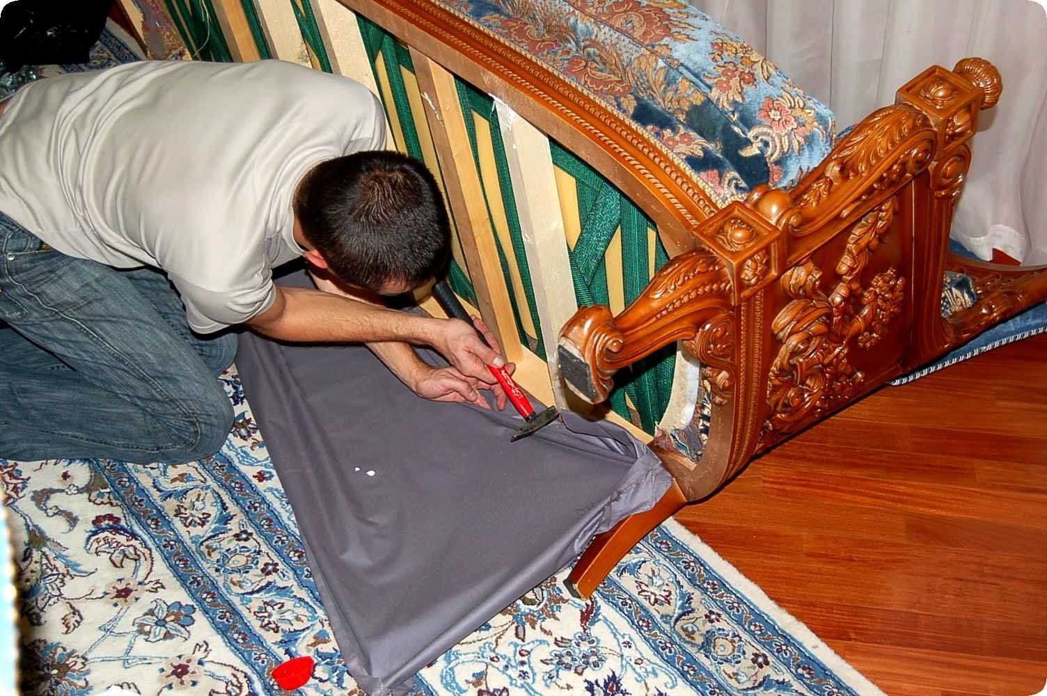 Проверяем каркас и основание дивана, производим замену в случае поломки