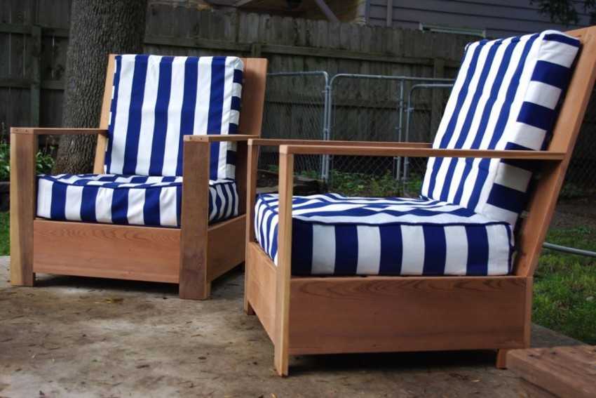 Сначала создают отдельные элементы. Потом их обрабатывают и проделывают отверстия, наносят на них лакокрасочные материалы. В отдельных случаях улучшают уже полностью готовое изделие. Что касается отдельных видов кресел, то особенностью твердых является отсутствие обивки. Обычно — это просто стулья с подлокотниками. Полумягкие варианты представляют собой кресло с обивкой и наполнителем внутри. Мягкая обшивка обычно присутствует на сиденье, подлокотниках, спинке. Расход ткани будет невелик. Первые две модели кресел больше подойдут для сада. Мягкая разновидность стульев — полностью обита упругим материалом, прекрасный вариант для интерьера дома. Для сада, веранды и самого дома подойдет кресло-качалка. Это может быть мебель из различных материалов или же плетеное изделие. Разные типы кресел делают из поддонов, досок с балками, брусков, лозы. Иногда используют металл, причем алгоритм работы тогда не будет сильно отличаться от мастер-классов с деревянными моделями.